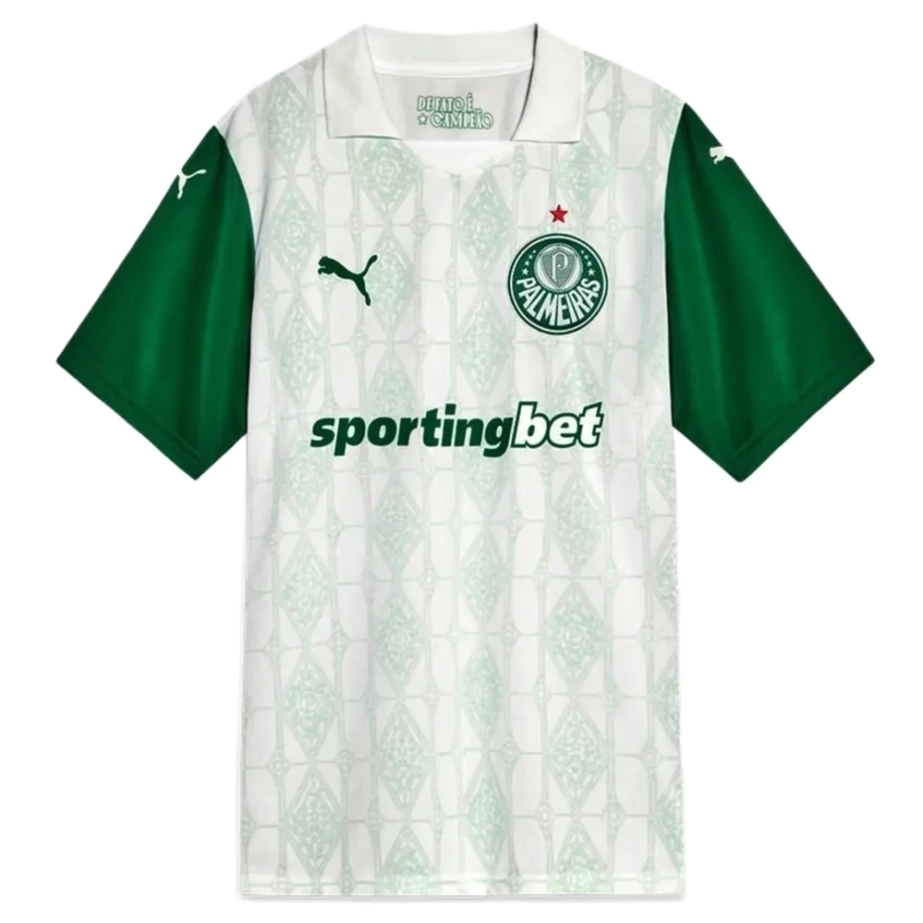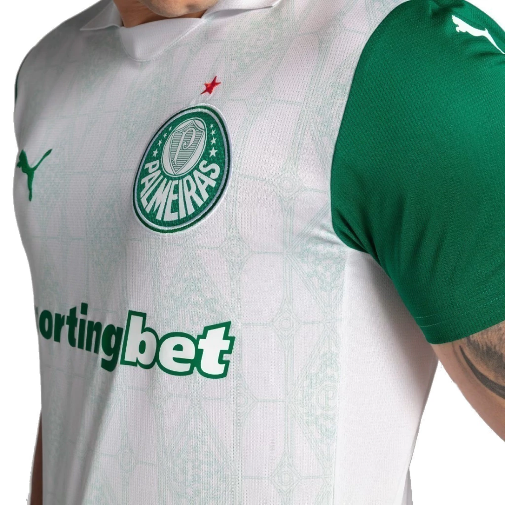 Com estampas que remetem às taças conquistadas pelo Verdão, como as 12 estrelas que representam os títulos brasileiros conquistados pelo clube, elementos de uma releitura da bandeira do Brasil e o “P” envolto em louros.