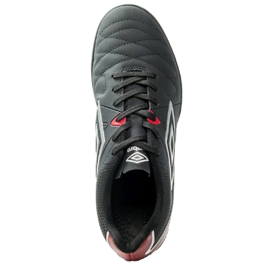 O cabedal é construído em material laminado com aplique de alta-frequência, detalhe diferenciado no Diamante Umbro e costura programada na parte frontal, preservando esse detalhe clássico e combinando com serigrafia e detalhe de textura gráfica.