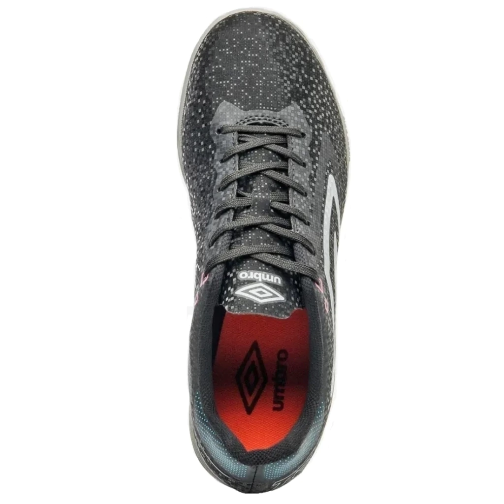 Cabedal construído em material laminado, forro traseiro em Mesh respirável com acabamento superior luvado, Diamante Umbro na lateral, assinatura Techno estilizada aplicada na lateral traseira e palmilha macia em EVA com tecido forrado.